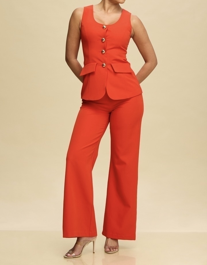 Disponible en vibrantes colores rojo Tomato y negro, es perfecto para eventos formales o salidas nocturnas. Los botones dorados añaden un detalle de lujo, elevando tu outfit a nuevas alturas.